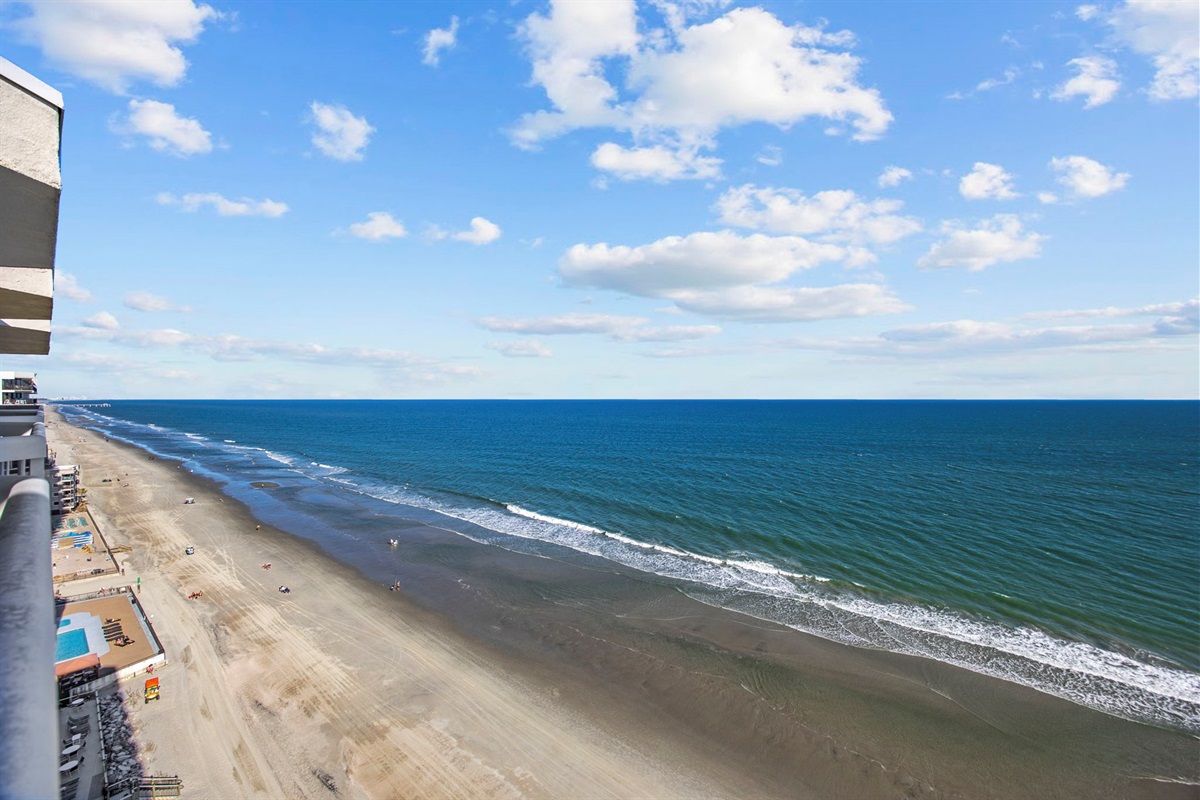 Imagine waking up to endless views of the Atlantic Ocean from your private 15th-floor balcony. This top-floor, penthouse level unit at Waters Edge Resort offers unobstructed ocean and beach panoramas – no roads or parking lots in sight from the balcony, just the rolling surf and wide sand below. The resort’s sturdy 15-story concrete structure ensures a quiet, private experience. Relax in the warm sea breeze and listen to the waves; it’s a beachfront retreat you’ll never forget.